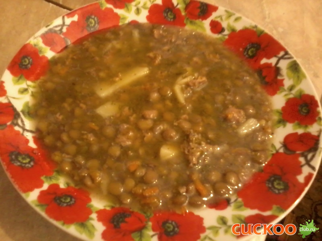 Женечка я выставляла время минут 40,т.к чечевица варится гораздо быстрее чем горох или фасоль.Получилось как раз так как мы любим ,не разварилась и не твердая.моя дочь называет этот суп "супчик с подушечками."