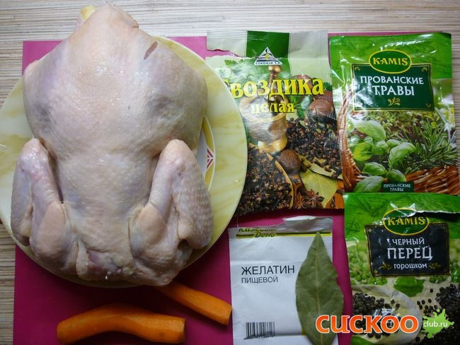 Куриный сальтисон в Cuckoo 1055 Ингредиенты:1 – Курица – 0,5 штуки
