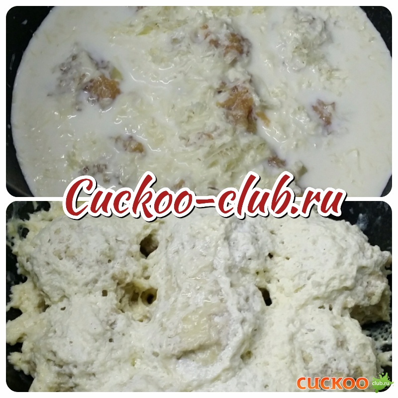 Сформированные шарики выложить в смазанную маслом чашу мультиварки (без заливки, но можно налить чуть водички), выбрать режим Мультиповар 100 градусов минут 25-30, а потом залить сливками и доделать на режиме Духовка 1 уровень минут 15. Так, по идее, не придется доливать сливок, и шарики тоже подрумянятся))