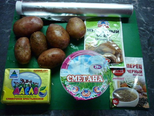 В отдельной посуде заправляем картофель маслом, мускатным орехом, перцем и солим.
