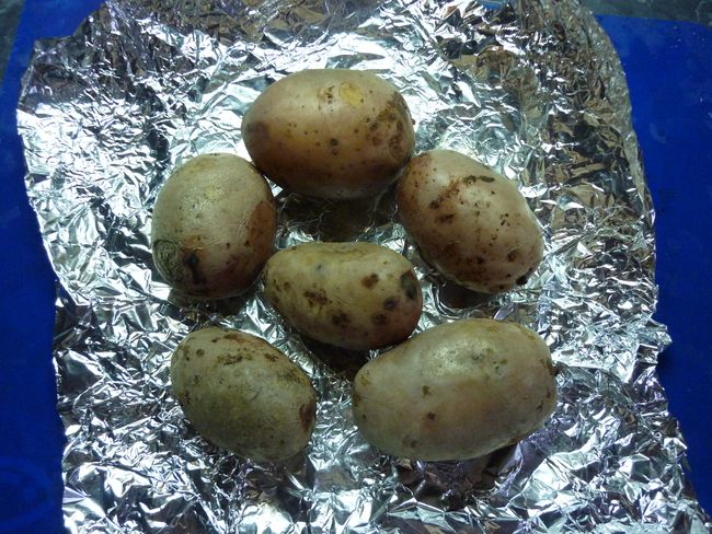 Закрываем крышку и выбираем программу “Духовка”. Выставляем время 25-30 минут и второй уровень температуры. Нажимаем кнопку “Старт”. После сигнала вынимаем картофель и очищаем. Затем нарезаем картофель на кусочки.