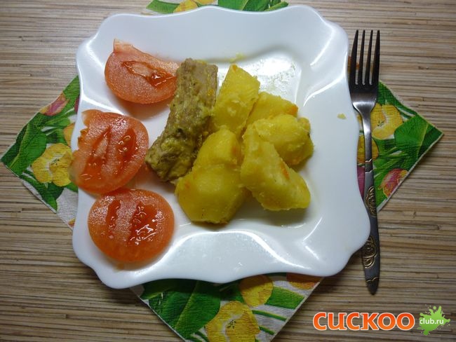 Картофель тушеный со свиными ребрышками в Cuckoo 1055