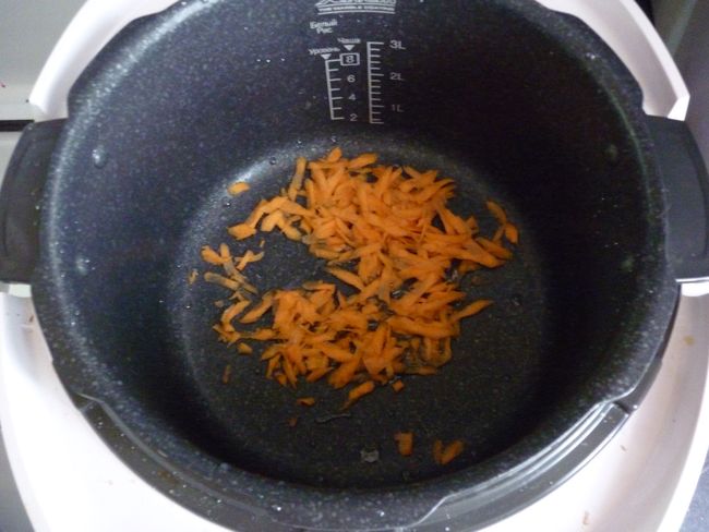 В чашу мультиварки наливаем растительного масла, выкладываем морковь.