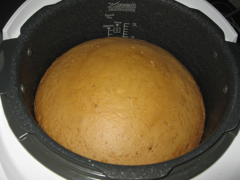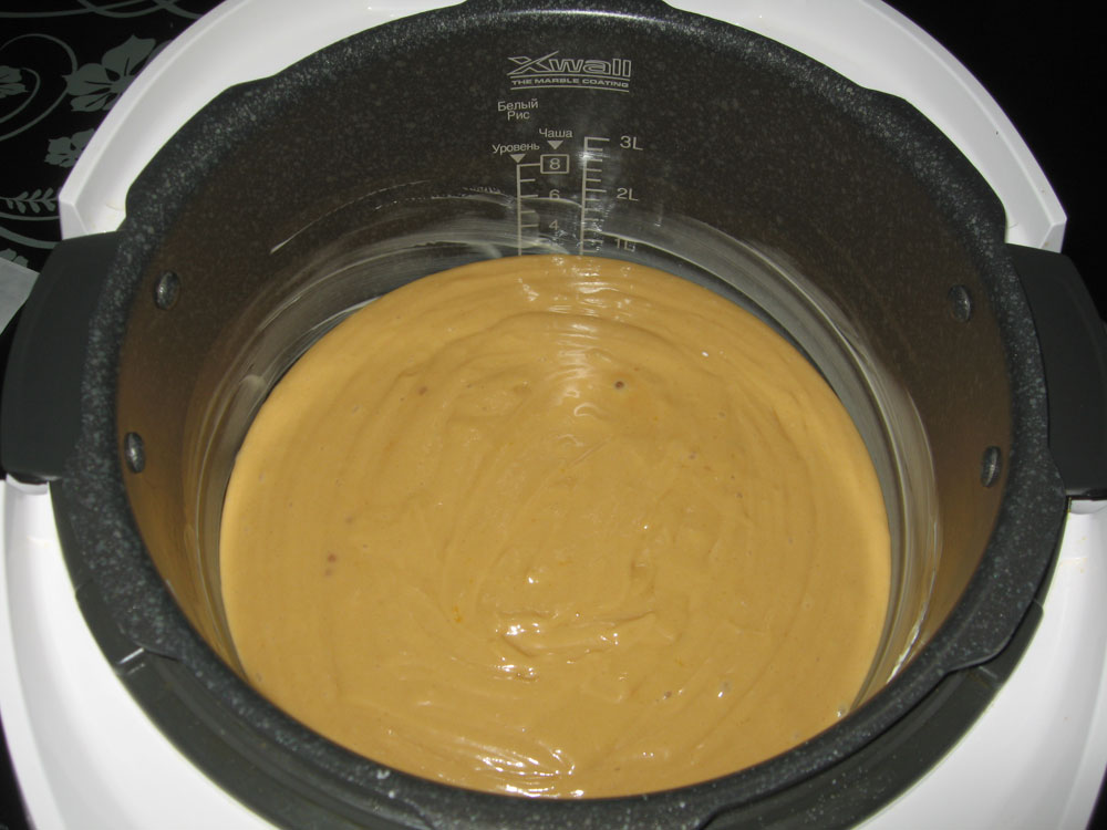 Смазать чашу маслом. Вылить тесто. Выпекать 1 час 10 минут на режиме Выпечка 1 уровень.