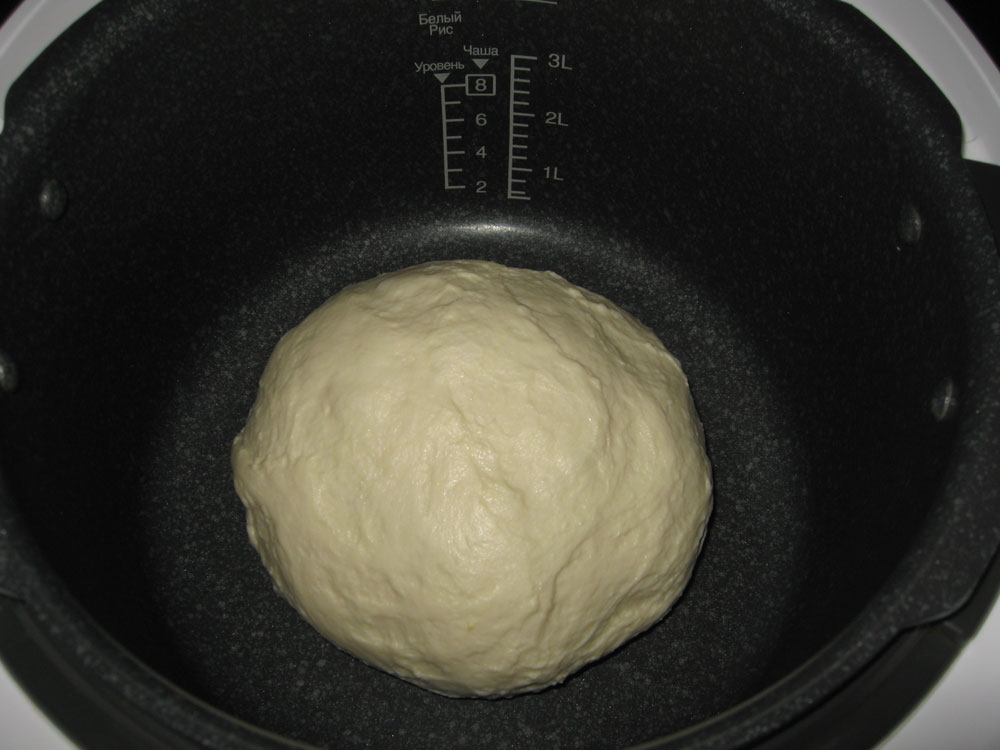Вот такой вид имеет тесто в ведерке ХП после полного замеса.