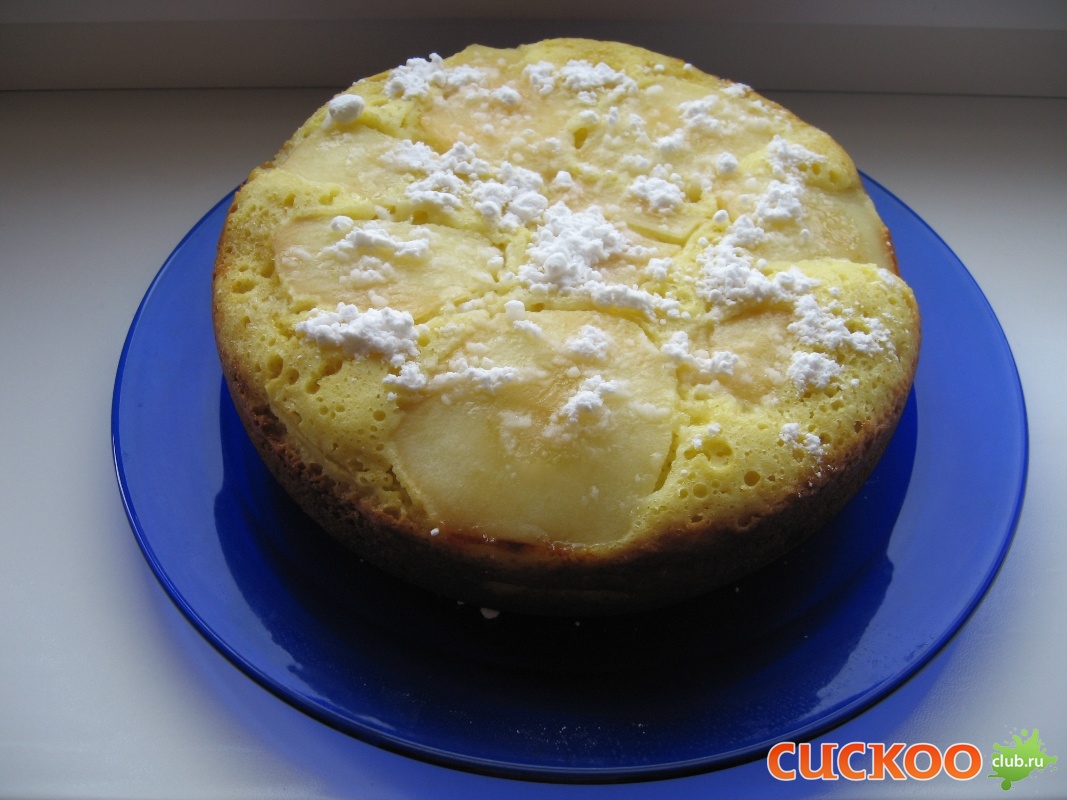 И я тут снова с яблоками забавляюсь. Типа шарлотки, добавила еще сметану в тесто, чтобы больше получилось.
