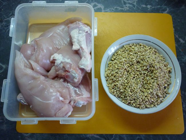 Курицу разделываем на куски, солим, добавляем специи, у меня прованские травы, можно обмазать майонезом.