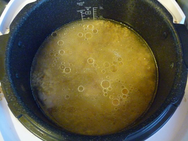 Закрываем крышку и выбираем программу “Плов”. Нажимаем кнопку “Старт”. Ждем окончания программы. После сигнала, открываем крышку,