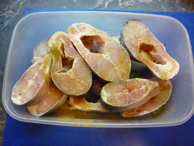 Рыбу моем, солим и добавляем специи.