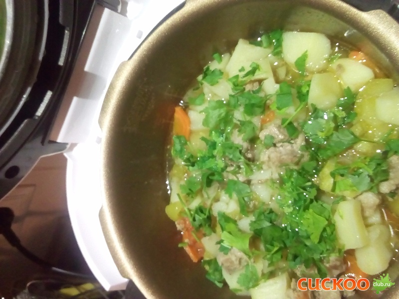 Свинина тушеная с овощами в Cuckoo 0804