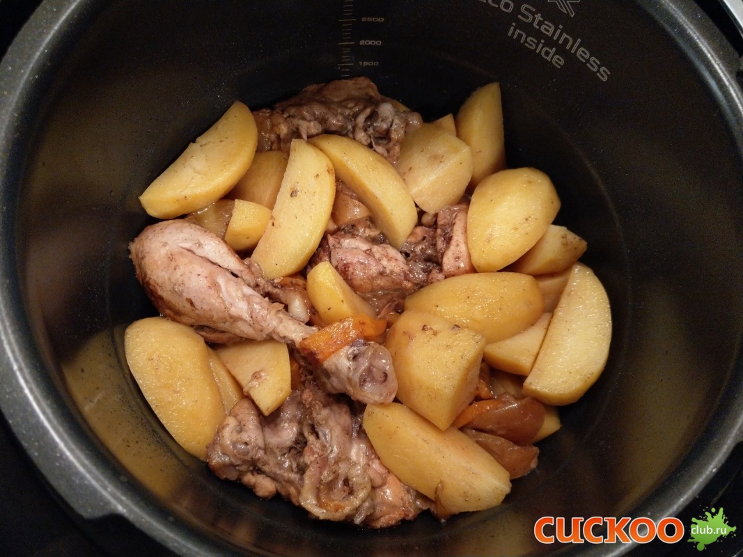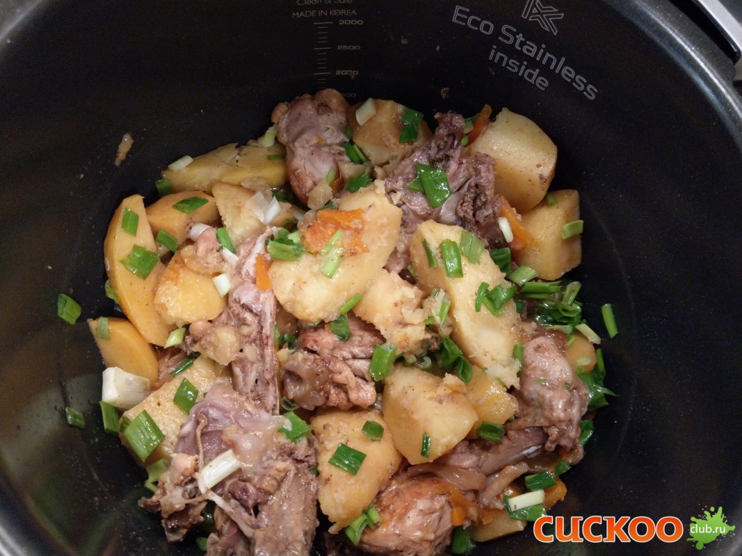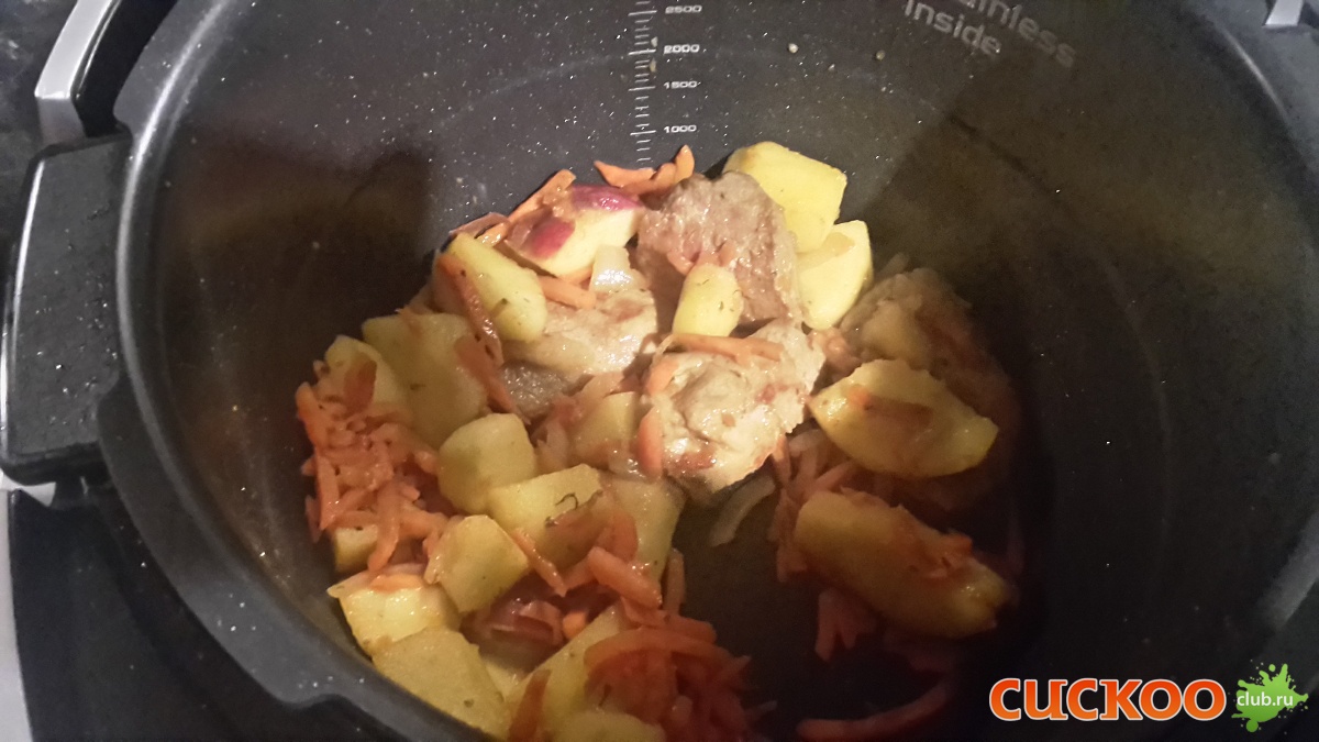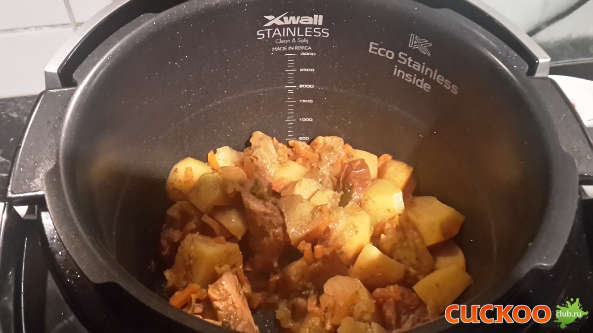 Добавила 1 и еще четверть мс воды,специи и Тушение - Мясо.