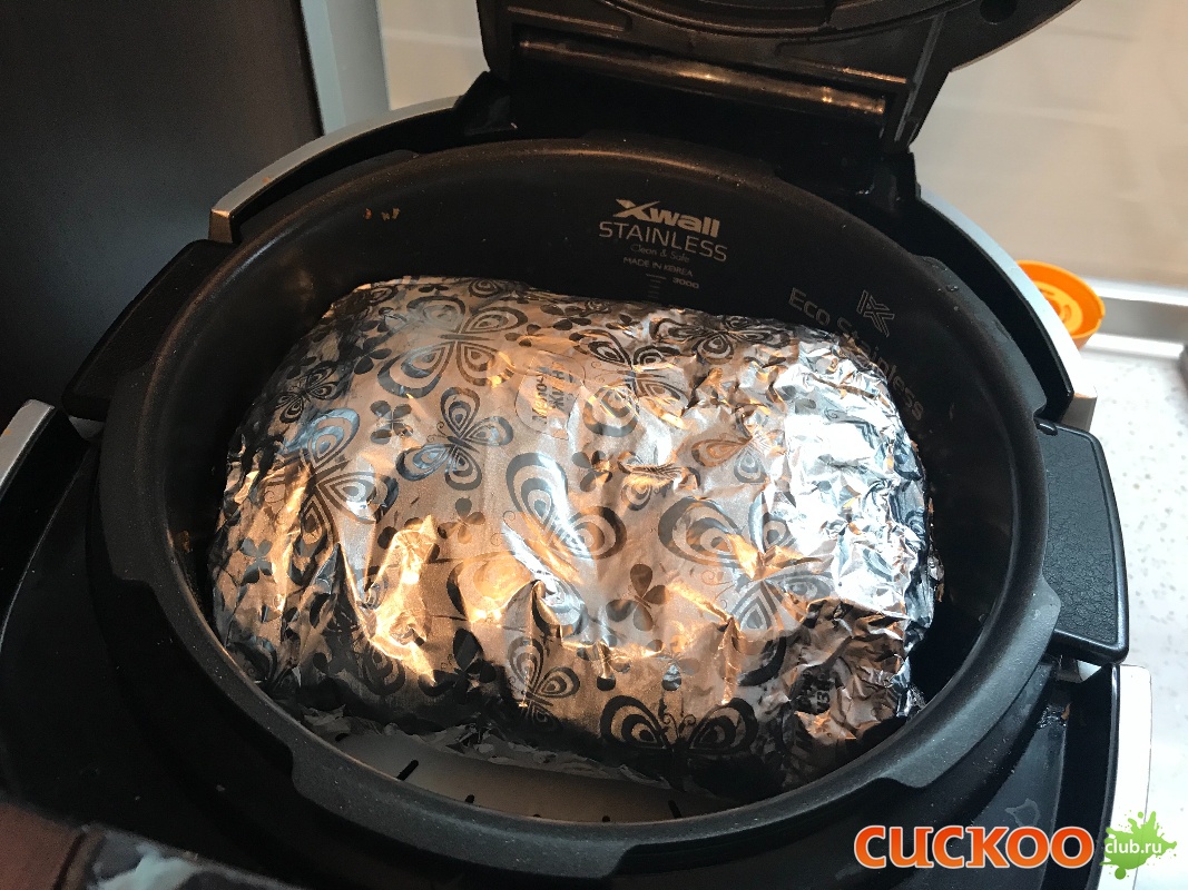 Обернуть мясо в 4 слоя фольги.