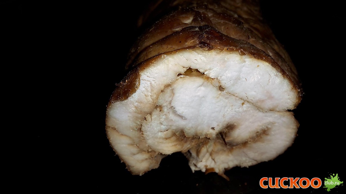 У нас,когда дома нет колбасы,то у мужа трагедия,т.к он перед работой пьет кофе с бутербродами и никакой творог или сыр ему не заменит колбасу. А тут ее нет,а в магазин идти лень. Посмотрела,что в морозилке была куриная грудка и решила сделать бастурму. Разморозила и залила молоком где-то на 2 часа ( у меня получилось немного больше,т.к я была занята.).Затем смешала красный молотый сладкий и горький перц, мускатный орех, выдавленный чеснок,размеленный лавровый лист,соевый соус,и болгарскую приправу для мяса. Мяско вынула из молока,обсушила бумажным полотенцем и намазала маринадом на 10 мин. Затем свернула две грудки вместе рулетом и туго связала ниткой. Положила в рукв для запекания и сделала в нем дырочки и в мультю. Духовка, 25 мин, 3 уровень температуры . После окончания она еще пролежала где то 40 мин,т.к я на "минутку" зашла к соседке.