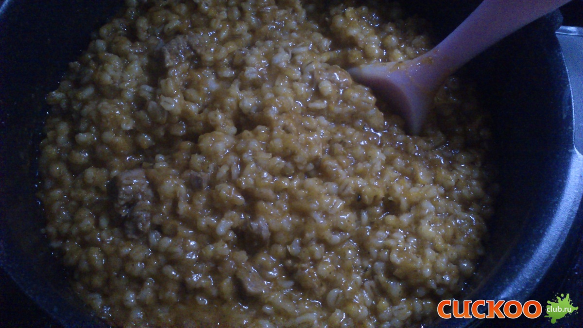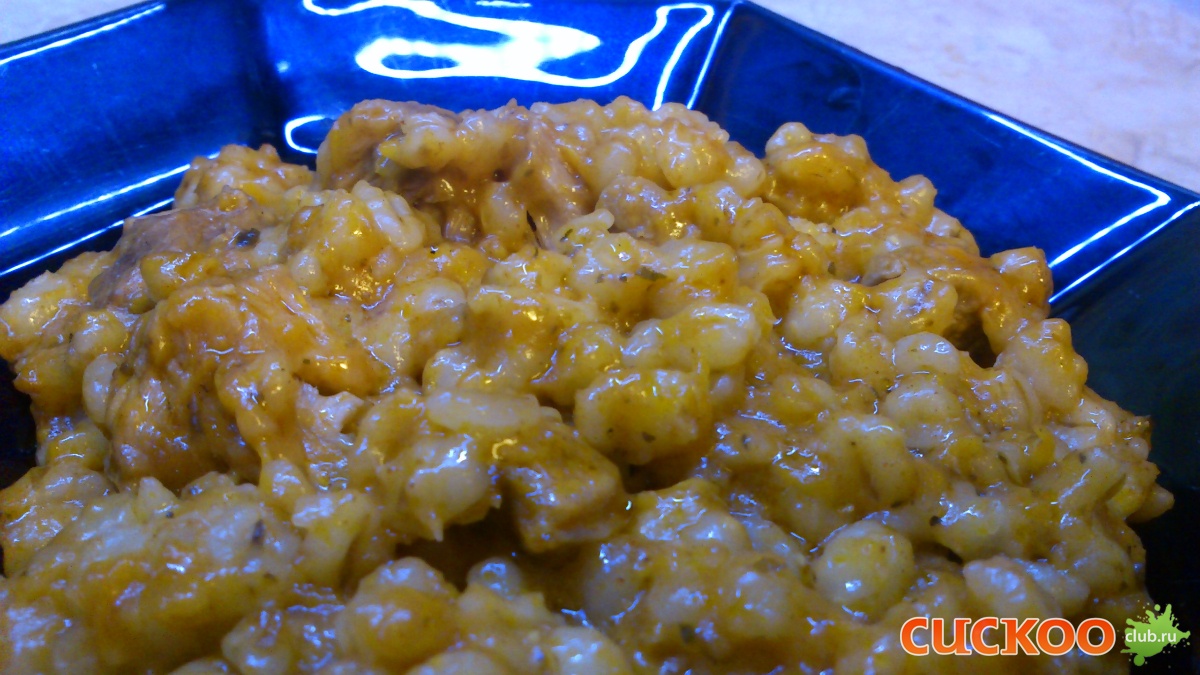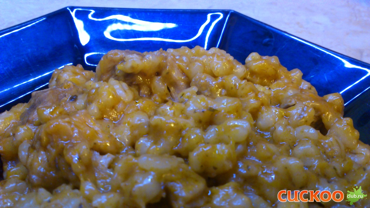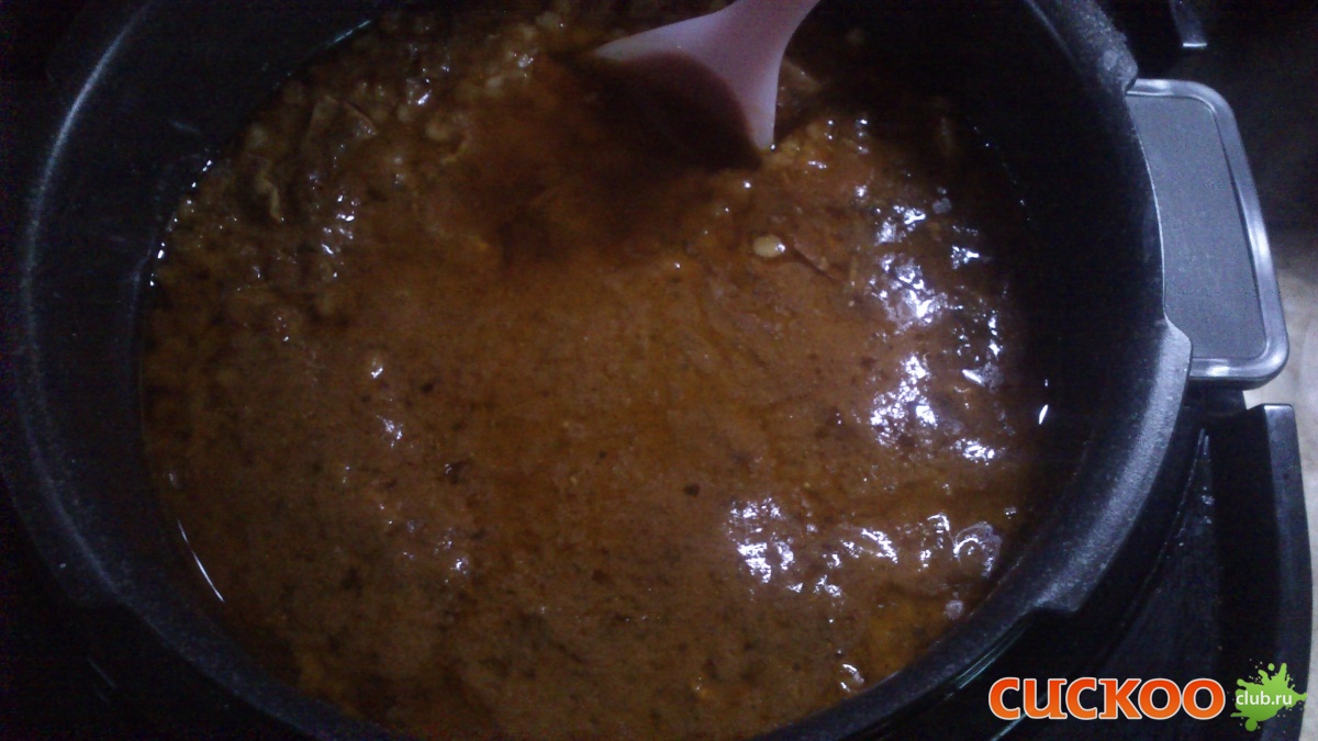 ( Зря, потому что в итоге блюдо получилось ну очень жирным. Наверно, потому что в кукушке, в отличие от духовки, жиру некуда испаряться и весь он и остается в блюде, об этом я не подумала. Тут надо либо зажарку делать без масла, либо сливочного добавить совсем немножко) Короче, по окончании приготовления (РР 2 часа) получилось вот что: Перемешала