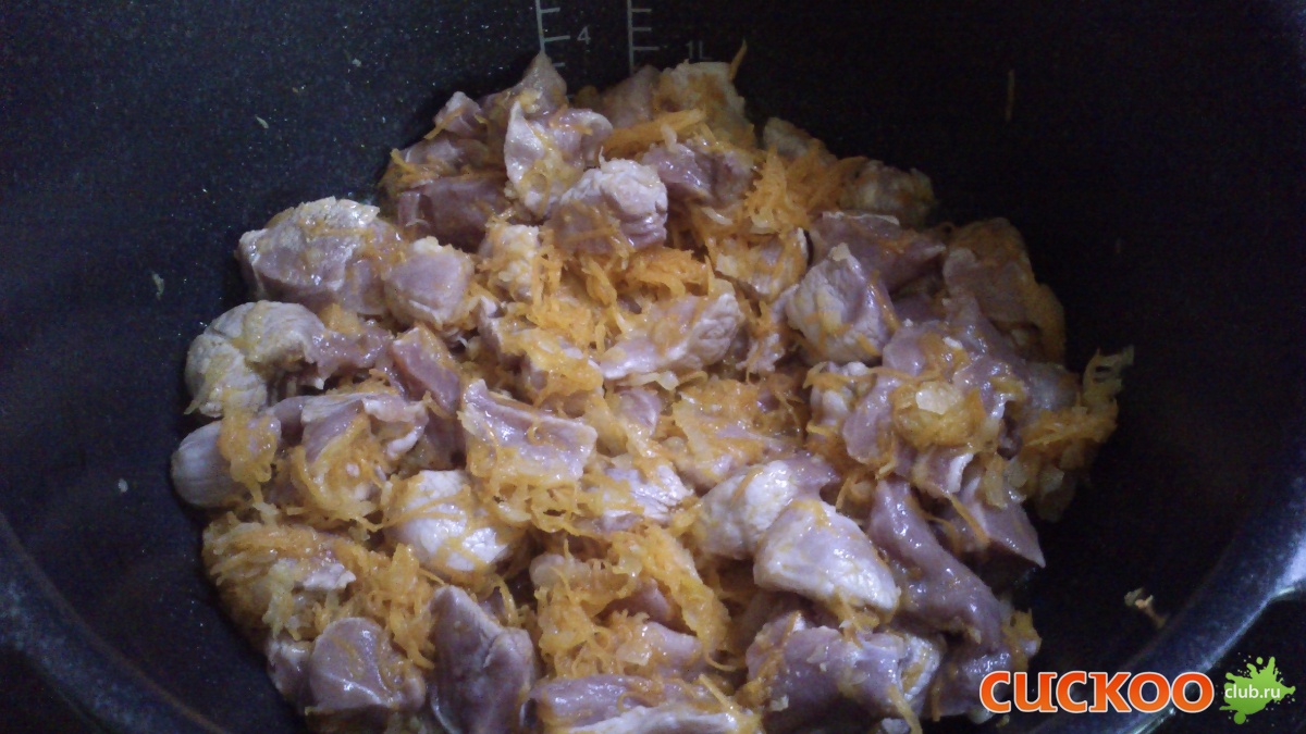 4. На программе Поджарка, 3 уровень, сделала зажарку из овощей, добавила мясо.