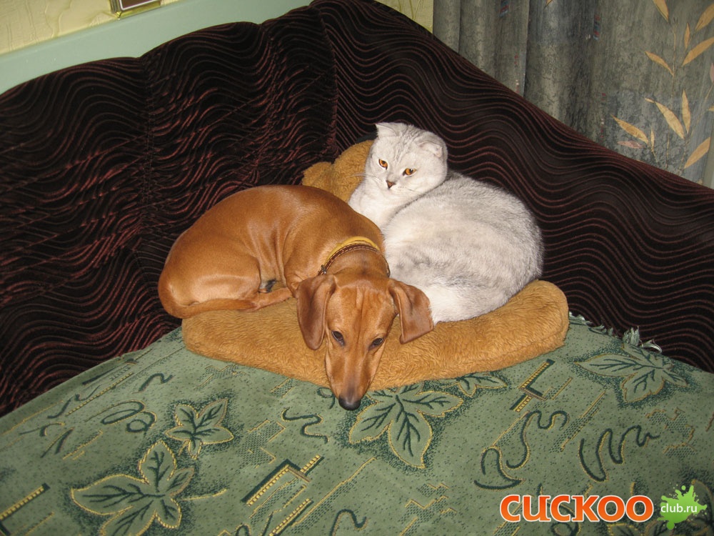 Женя, ну рассмешила f13 Они одинаковые. Такса ведь карликовая, а кот крупный. Собачка весит 5800, а кот 5100. Собачку подбирали по размерам специально для кота. Кот у нас большой. Все кто видит это замечает.