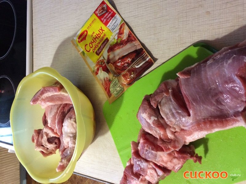 Килограмм ребрышек свиных, хотя у меня одно название рёбрышки, а так почти одно не жирное мясо и чуть чуть хрящечков v4 повезло на рынке такие вкусняшки купить.