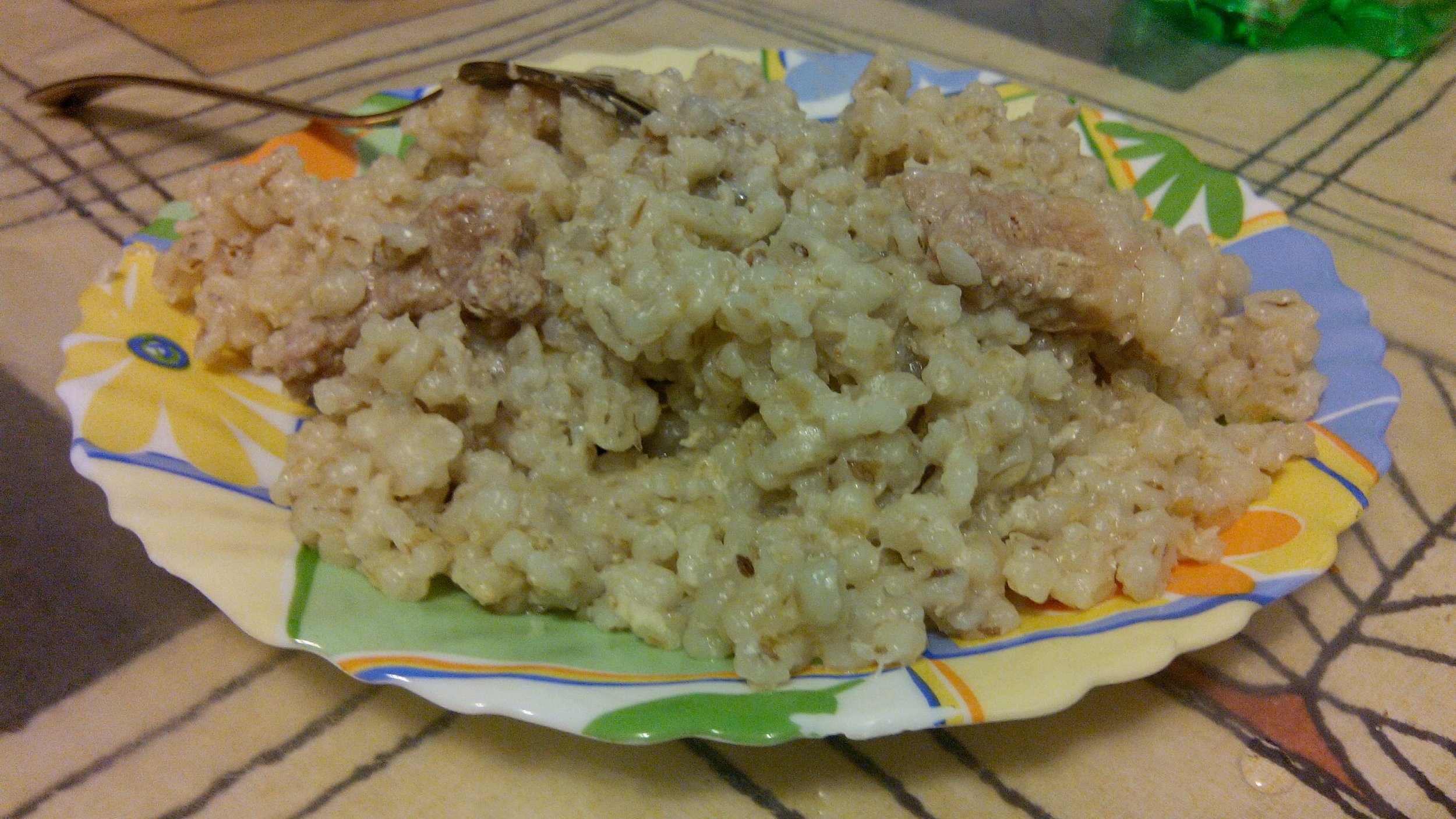 Перловочный плов с куриными желудками