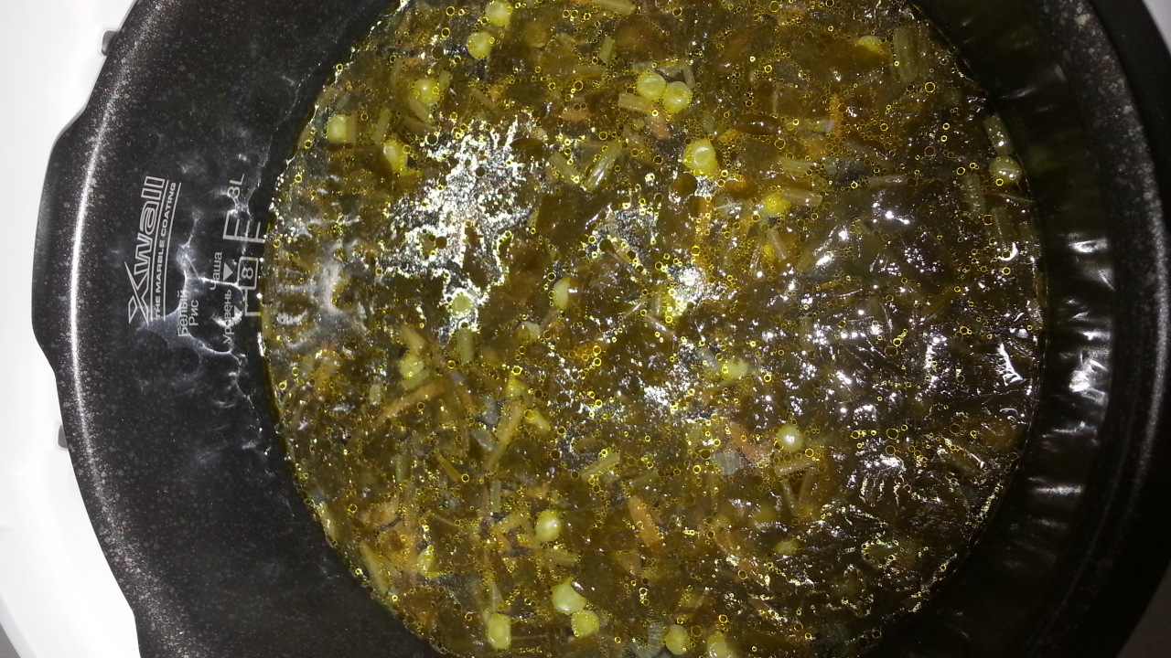 Фото исходников забыл сфоткать. Есть только готовый борщ. Прозрачная юшка. Не так как на плите. Все хорошо сварилось и не разварилось.