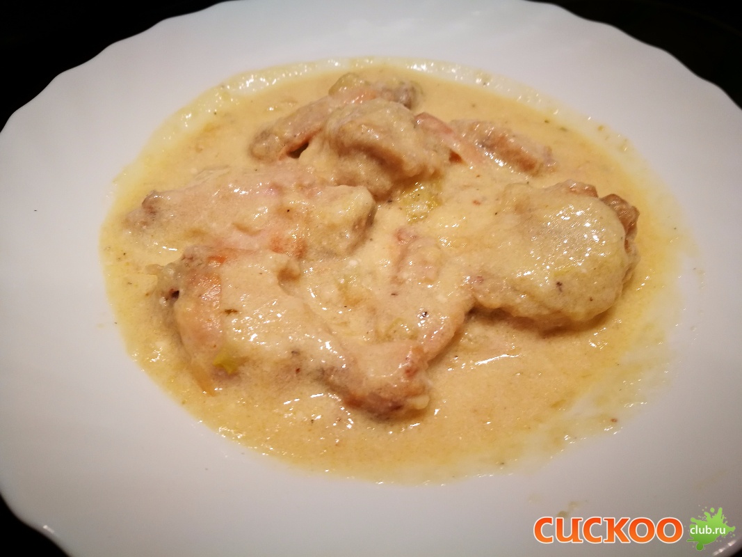 Смешать 600 гр сметаны с 600 гр воды и залить курицу