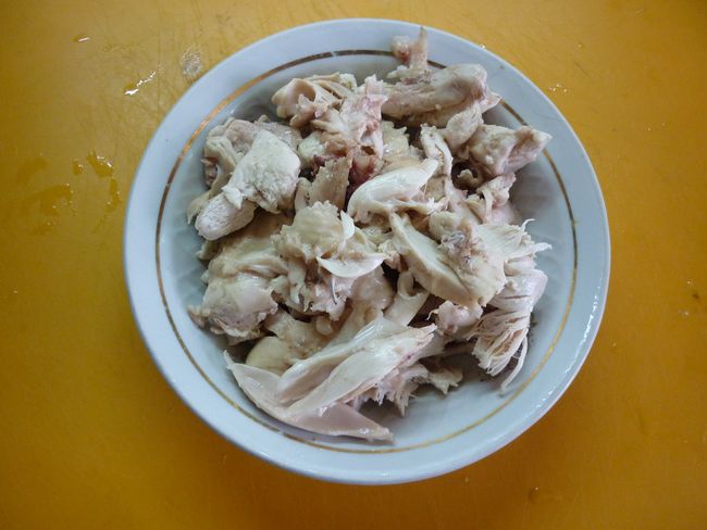 После сигнала курицу вытаскиваем, остужаем и отделяем мясо от кости, а бульон процеживаем.