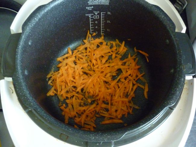 Чашу моем и наливаем растительного масла, выкладываем морковь.