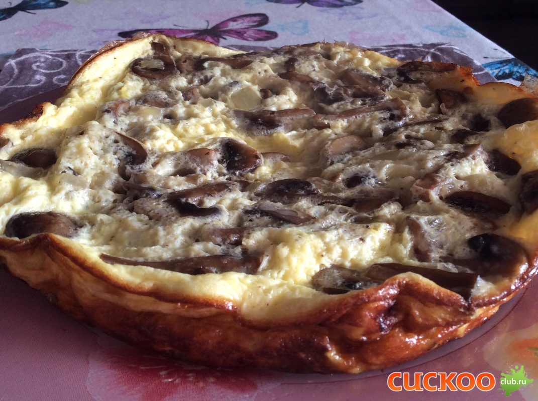 А я сделала такой: обжарила 8 шампиньонов и луковицу, добавила яйца (5 шт плюс 1 мс молока)! Соль, перец! На режиме духовка 18 мин))