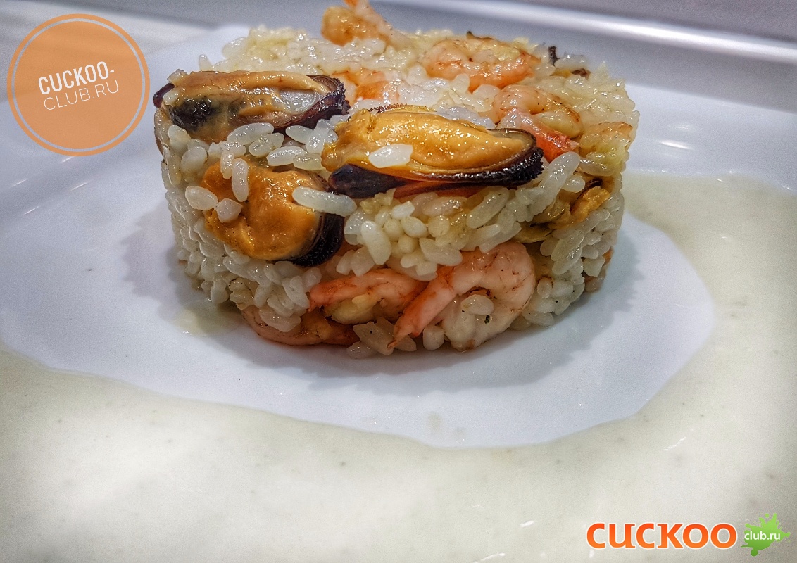 Морепродукты с рисом в соусе из сыра с зеленой плесенью